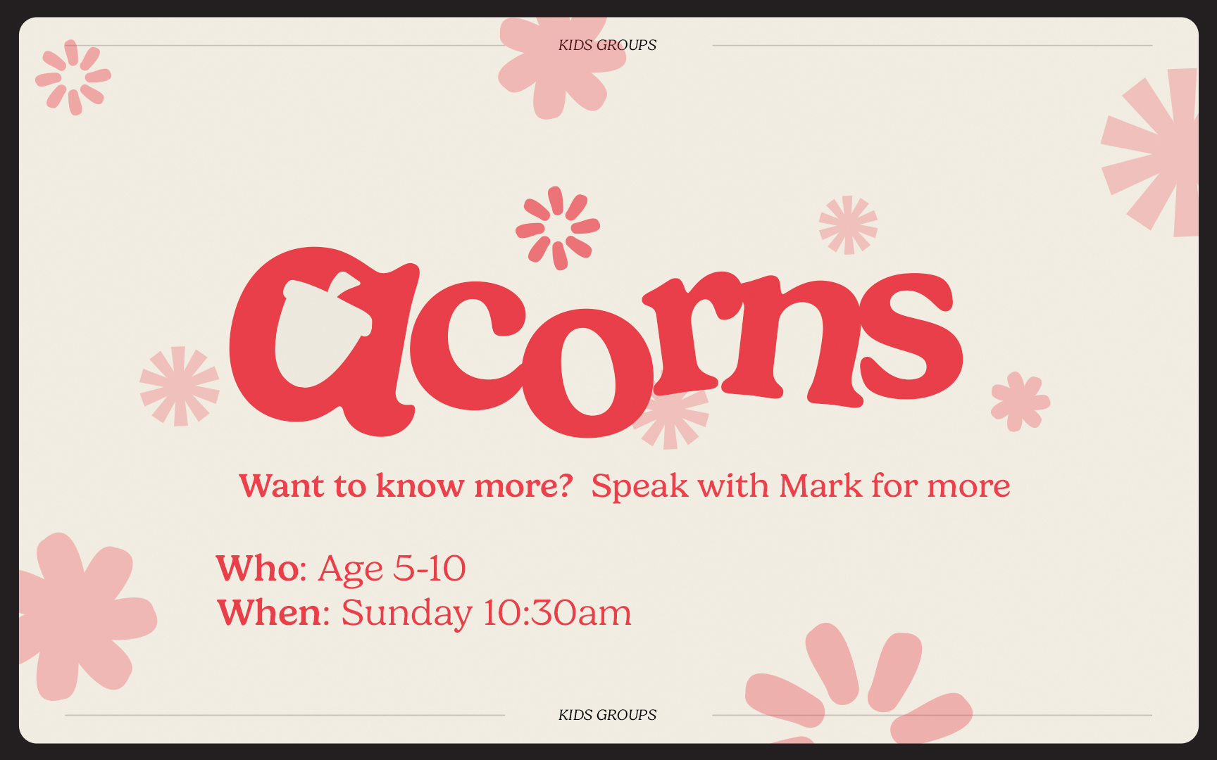 Acorns Sunday at 10:30am & Monthly Wednesdays at 6pm